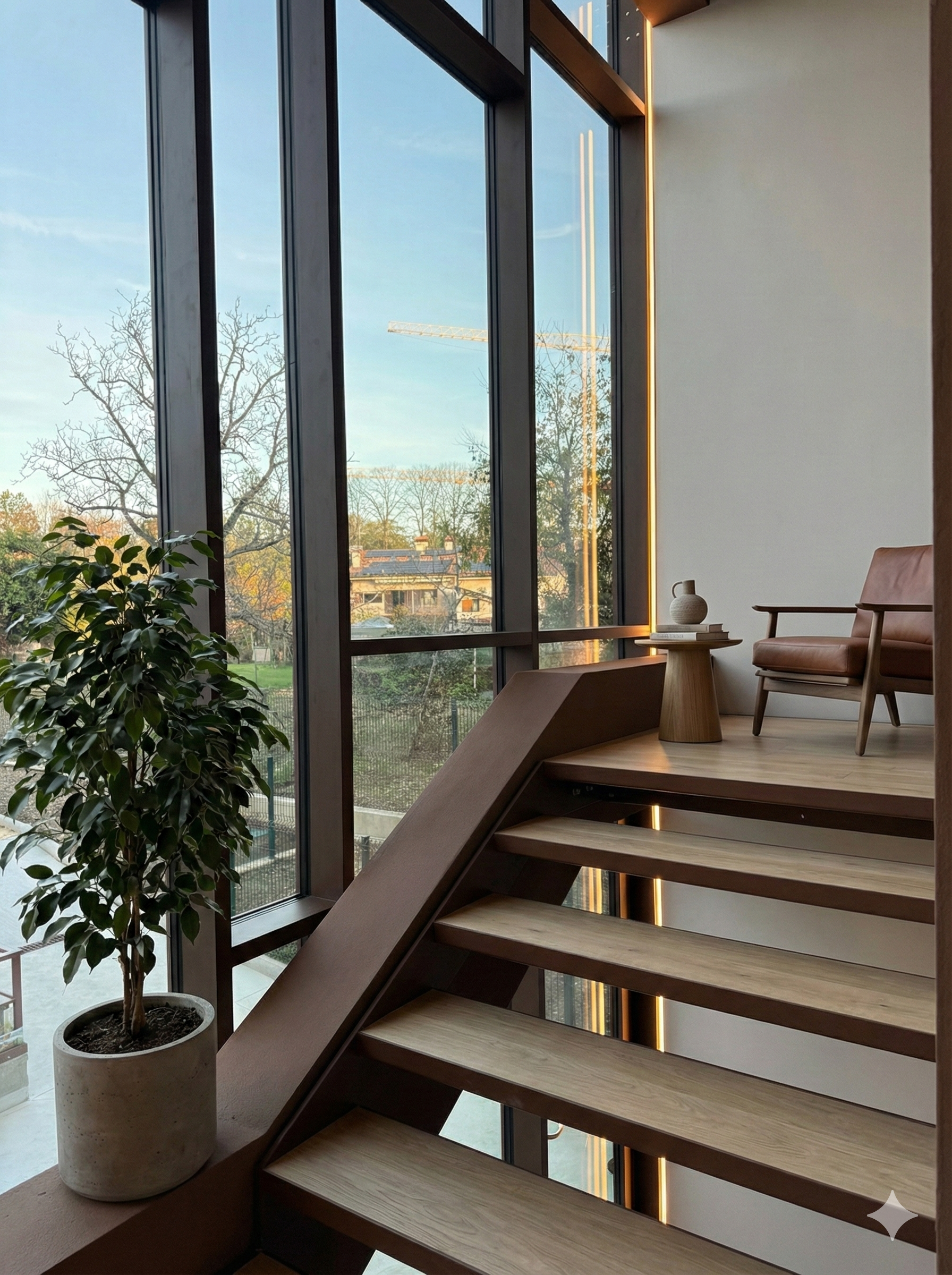 Finiture curate, grandi aperture vetrate e dotazioni tecnologiche moderne per un’esperienza abitativa di qualità.