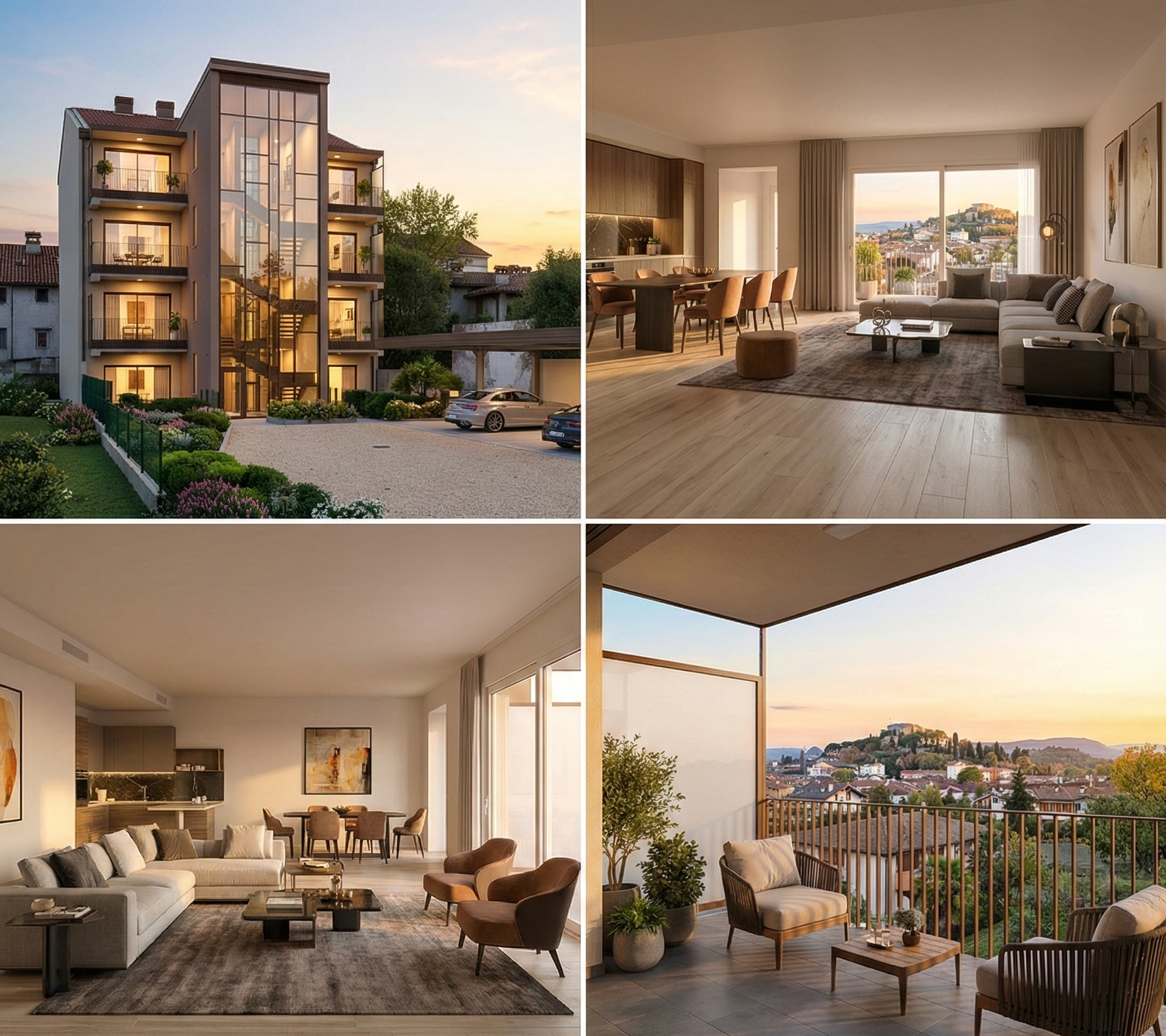 Il progetto comprende 8 unità abitative esclusive — due con giardino privato e sei con terrazzo abitabile — tutte realizzate secondo standard di ultima generazione e pensate per garantire benessere abitativo in ogni stagione.